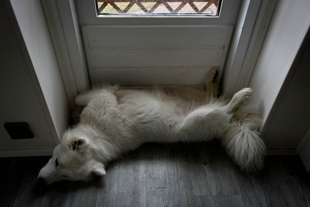 Kakkoslounaan jälkeen touhutaan Lyyran ja Kuuran kanssa sitä sun tätä. Tämä on Kuuran yksi suosikkipaikoista ja -asennoista.